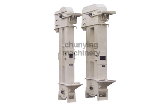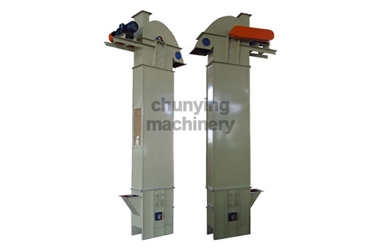 The hopper of the bucket elevator scoops up the material from the storage place below, lifts it to the top along with the conveyor belt or chain, and turns down after bypassing the top wheel, and dumps the material into the receiving tank. It is mainly divided into three types: ring chain, plate chain and belt. The transmission belt of belt-driven bucket elevators generally uses rubber belts, and chain-driven bucket elevators are generally equipped with two parallel transmission chains.